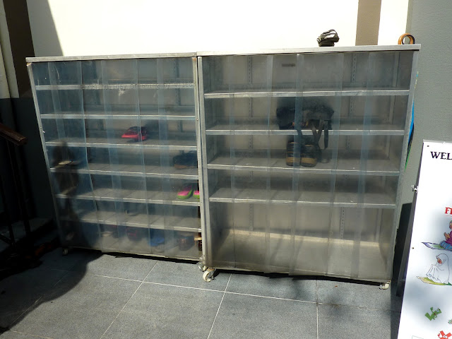 ▲回教堂正門樓梯旁的鞋架 Shoes racks before the main entrance of Sultan Mosque |
