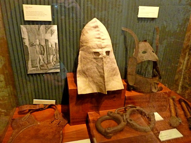 ▲舊墨爾本監獄使用的棉布頭套和用具 Calico hood & tools used at Old Melbourne Gaol |