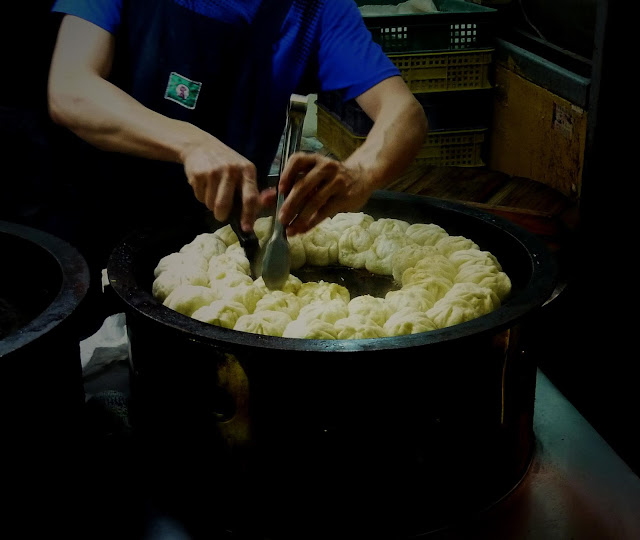 於是在排隊之餘,我們倆就開始享用了好不錯吃的水煎包和冰淇淋泡芙啦!