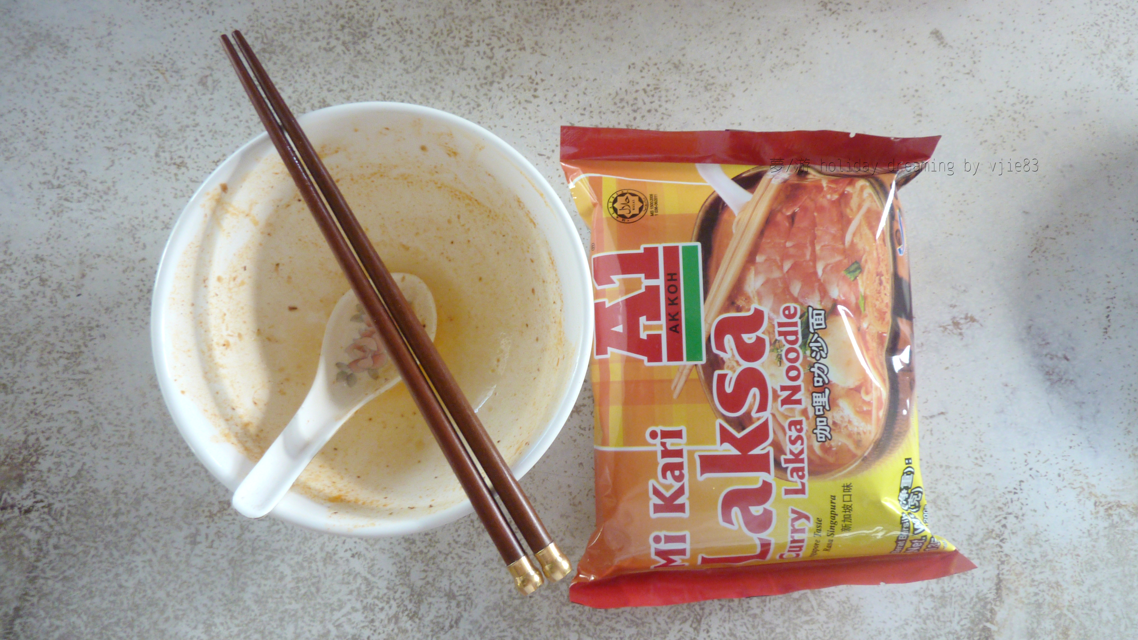 PS: 後來我有把辣椒粉、調味粉、叻沙醬和麵條一起煮,出來的效果有些不同。雖然蝦子的鹹香鮮、奶的甜味以及叻沙葉與香料味依舊,但辣度卻是有上升的哦!大約有到小辣至小中辣這樣。喝過湯或吃過麵後,口腔和喉頭會有刺刺、麻麻的感覺,而且大力吸麵條的話,辣味也會嗆人哦!