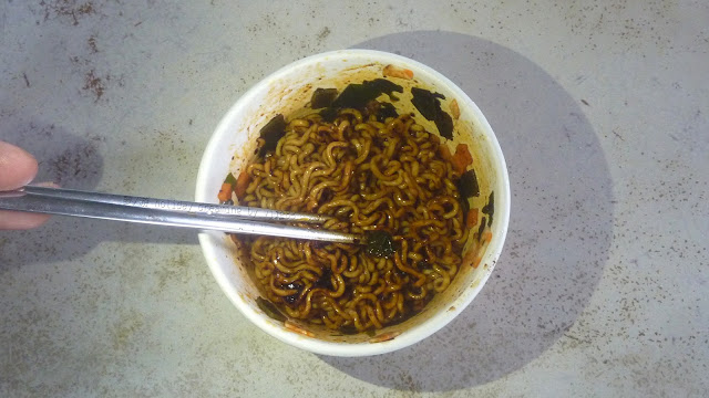 而且聞起來也挺像農心炸王的,皆有獨特的韓式炸醬味、豆醬味、醬油和雞精粉味