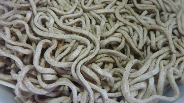 嗯……看樣子東洋水產在製作這個蕎麥麵時加的蕎麥粉要比其他廠家多哦!